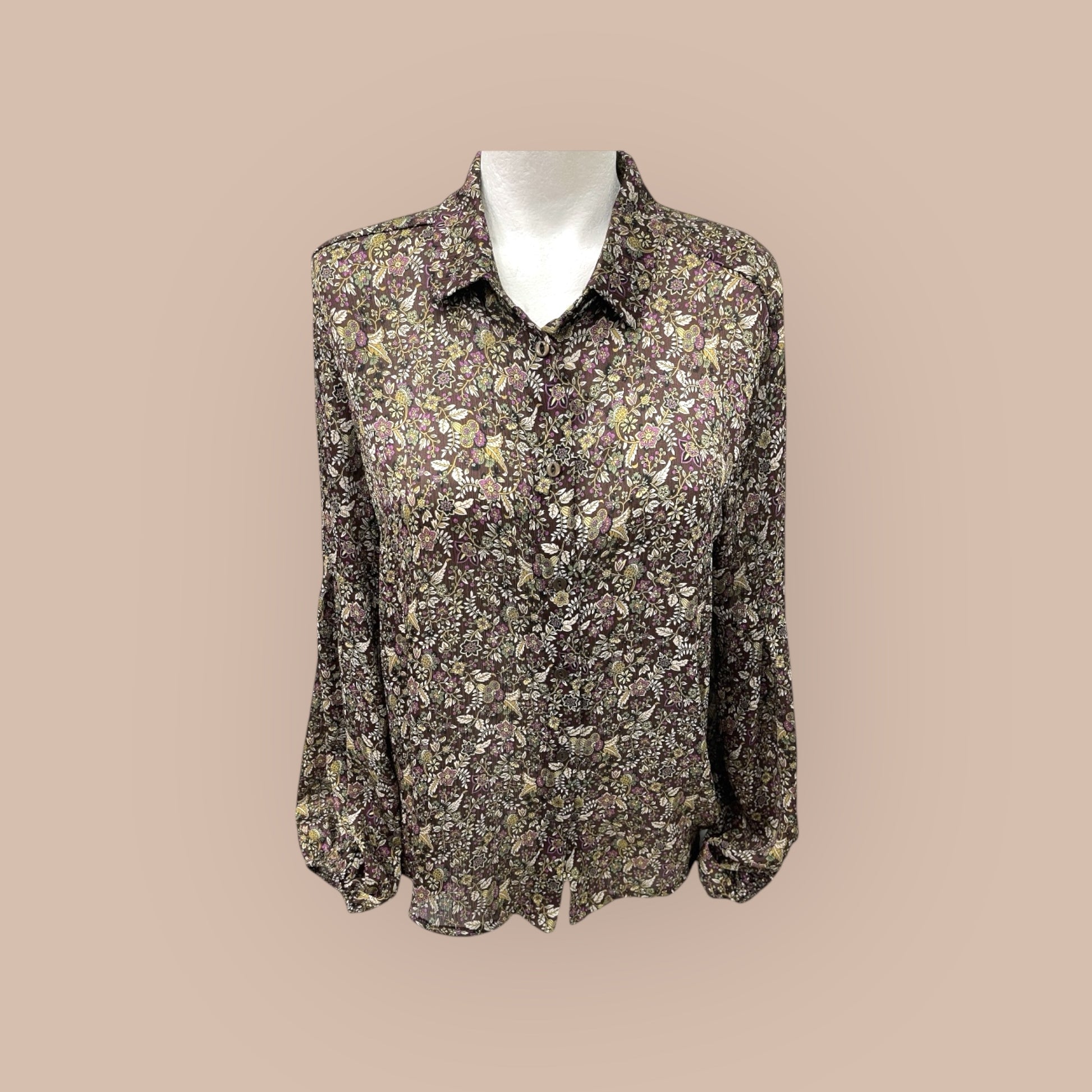 Questa camicia di viscosa fantasia floreale, con maniche lunghe a sbuffo, è l'aggiunta perfetta al tuo guardaroba. La morbida viscosa garantisce una vestibilità comoda, mentre il motivo floreale aggiunge un tocco di stile. Ideale per un look elegante e femminile.