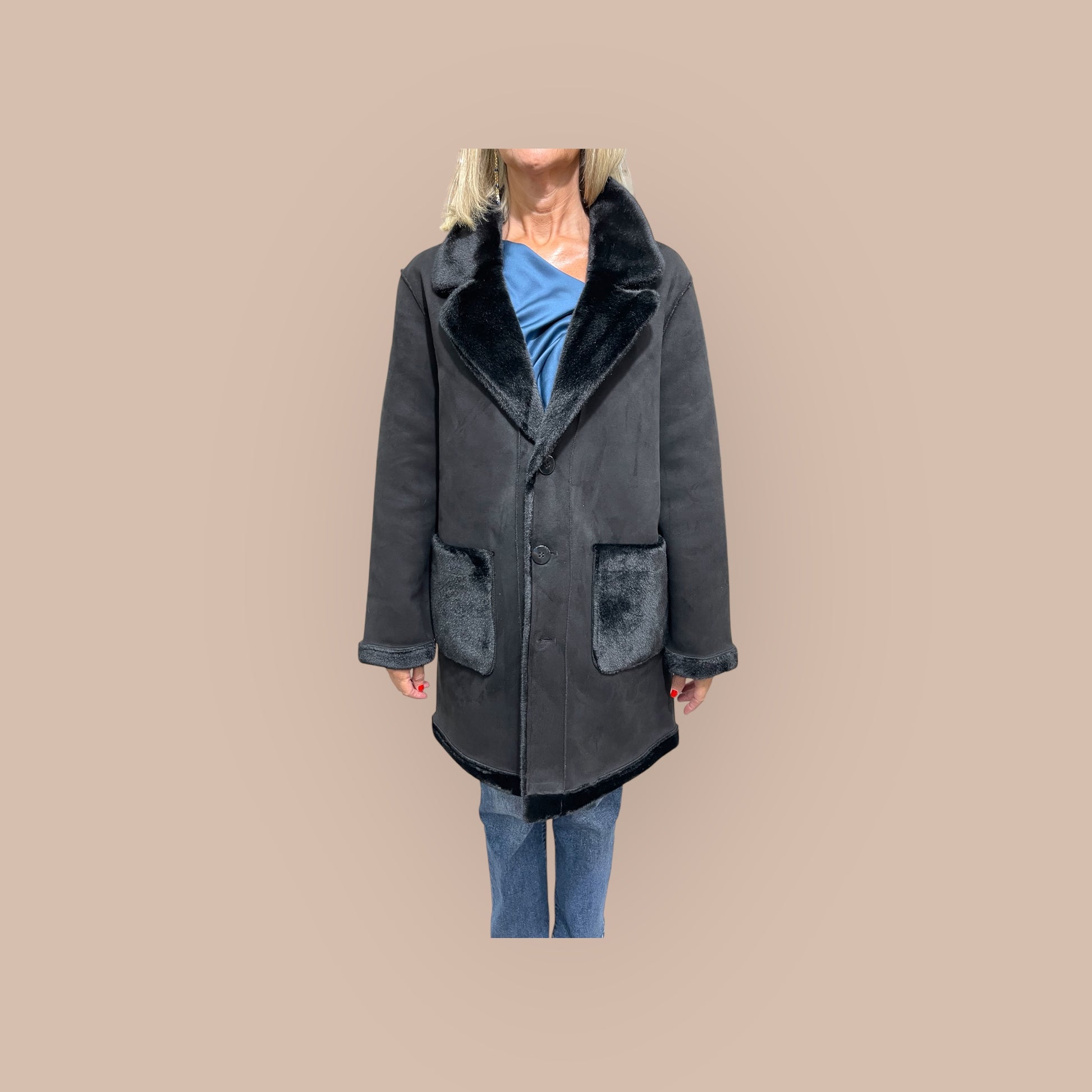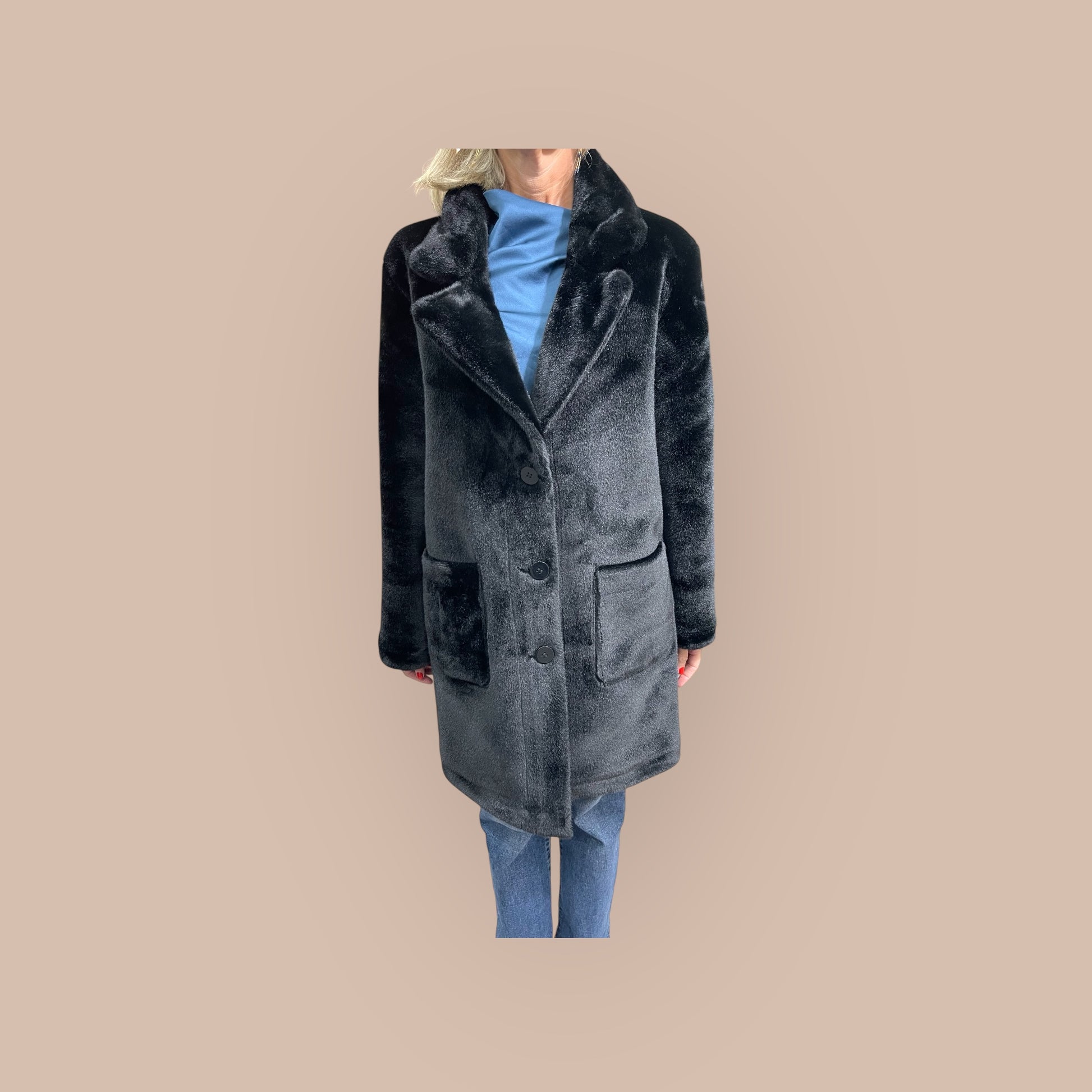 Il Eco montone Annalisa Ragno è realizzato con pelli rovesciate ecologiche di alta qualità, con collo a revers e pratiche tasche. La sua lunghezza sopra il ginocchio ti permette di proteggerti dal freddo in modo elegante e sostenibile. Ottieni il massimo comfort e stile con questo capo di abbigliamento ecologico.