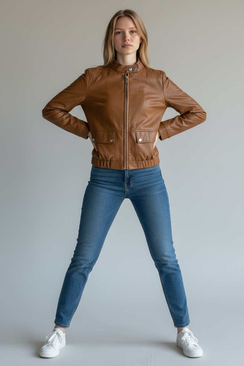 Il Giubbotto Adele è realizzato in ecopelle di alta qualità, dotato di tasche pratiche e di un elastico in vita che garantisce una vestibilità ottimale. Questo capo non solo offre un aspetto elegante, ma anche comfort, rendendolo adatto per diverse occasioni. La sua composizione sostenibile contribuisce a una moda responsabile.