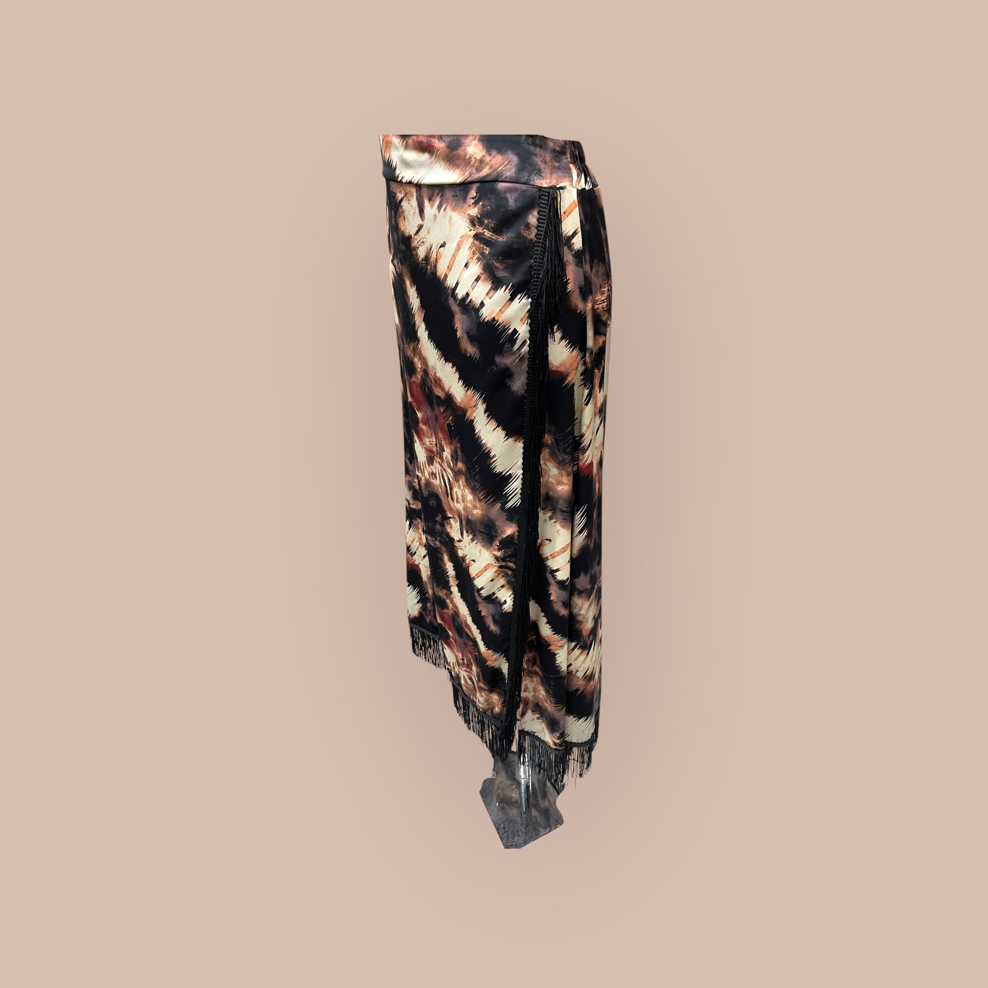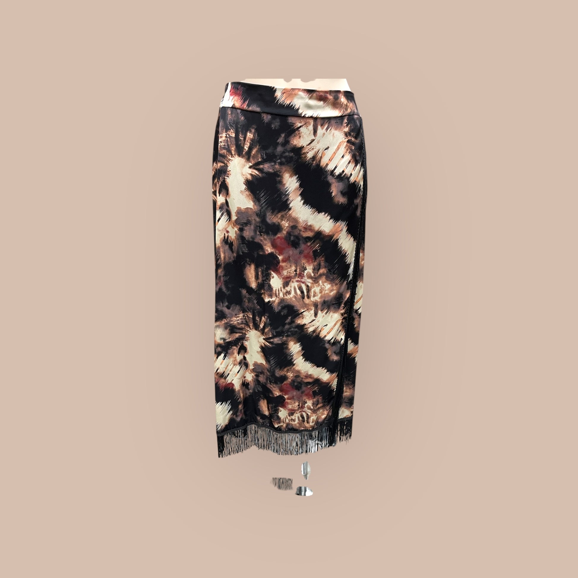 La gonna Ester è realizzata in morbida viscosa e presenta un design a portafoglio con eleganti frange. Perfetta da abbinare alla blusa Ester per un look coordinato e di tendenza. Lasciati conquistare dalla sua versatilità e dal suo stile unico.