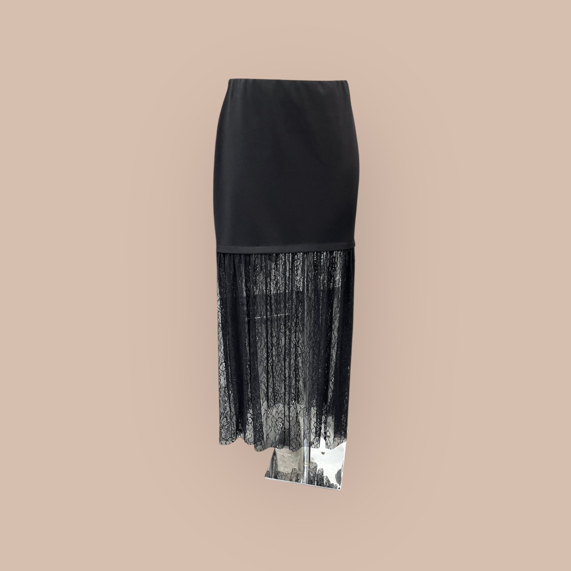 La gonna Gaia è il perfetto equilibrio tra comodità ed eleganza. Realizzata in morbido punto Milano elasticizzato, presenta un elastico in vita per una vestibilità confortevole e una grande balza di pizzo per un tocco di femminilità. Da abbinare alla gonna Gaia .Adatta per ogni occasione, da indossare con stile e sicurezza.