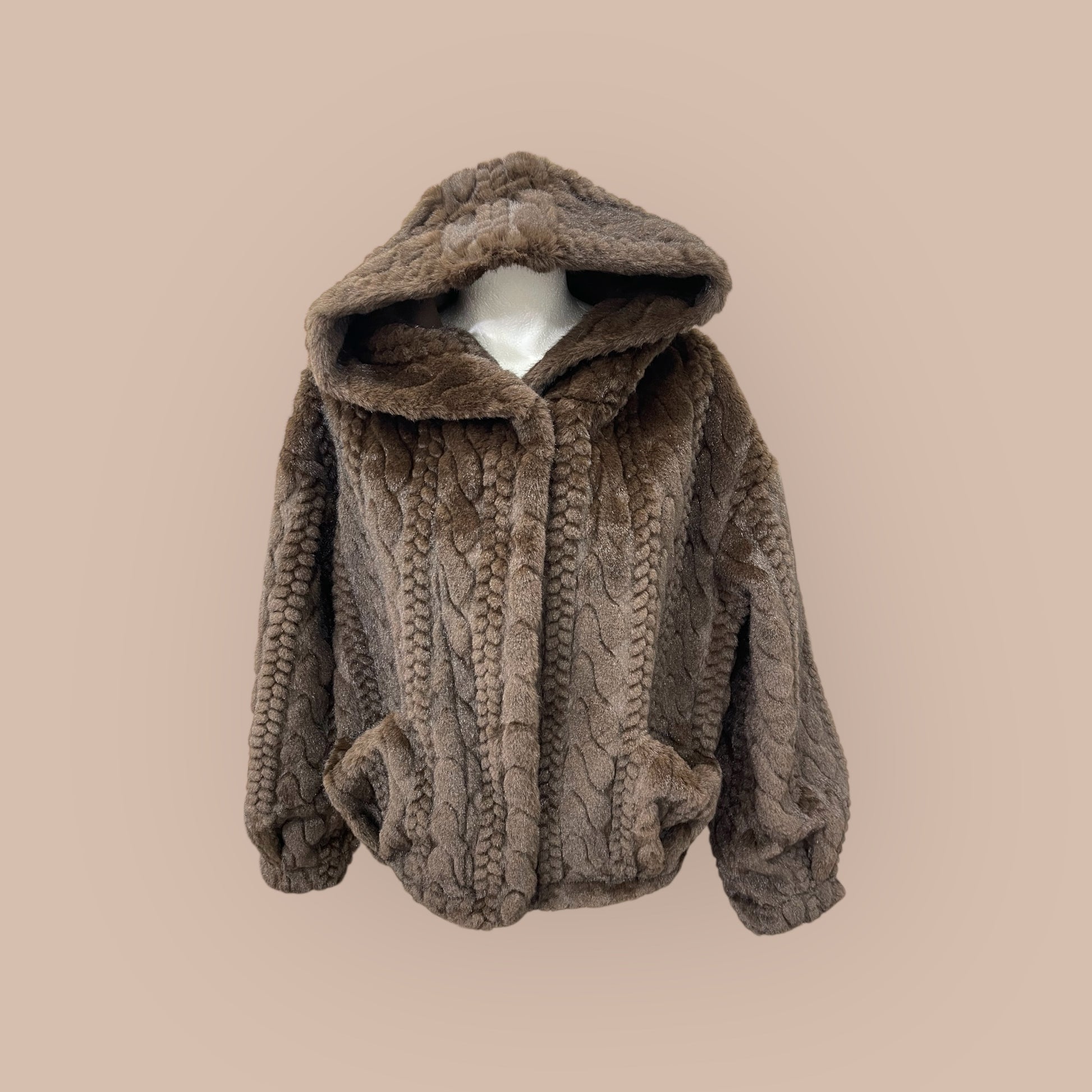 La pelliccia Emy è perfetta per chi desidera un look elegante e alla moda. Grazie al suo cappuccio e zip, ti proteggerà dal freddo in modo confortevole. Il suo design in stile giubbotto, con tasche ,ti garantirà un aspetto sofisticato. Le trecce impresse sul pelo aggiungono un tocco di originalità a questo capo di pelliccia ecologica di alta qualità.